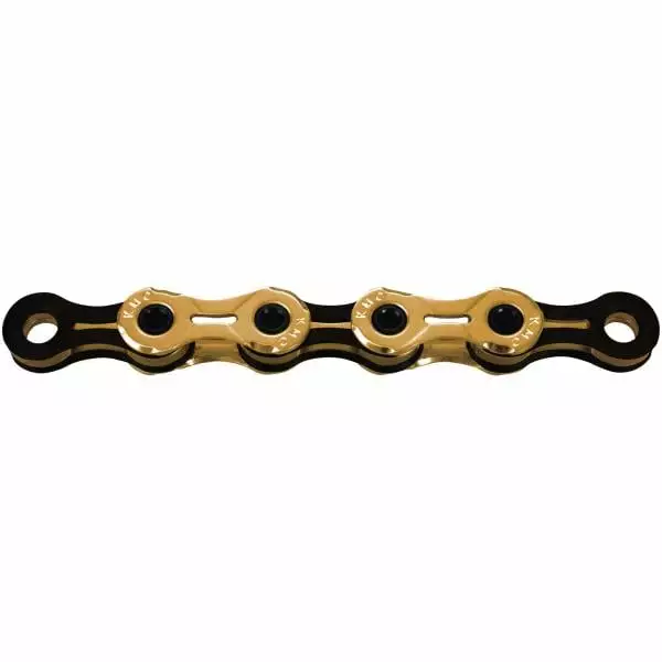 La chaîne KMC X11SL Ti-N noir / or est une chaîne très haute performance compatible avec les systèmes 11 vitesses Route et VTT proposée à un prix modéré.