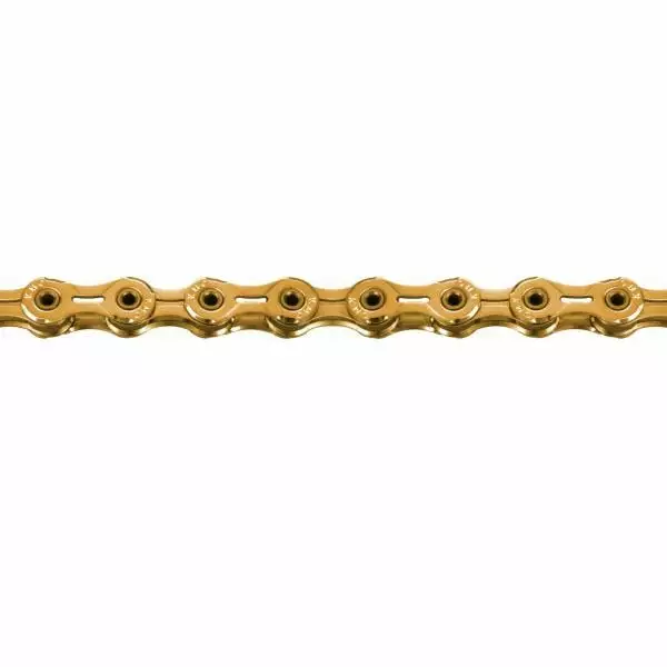 La chaîne KMC X11SL Ti-N or est une chaîne très haute performance compatible avec les systèmes 11 vitesses Route et VTT proposée à un prix modéré.