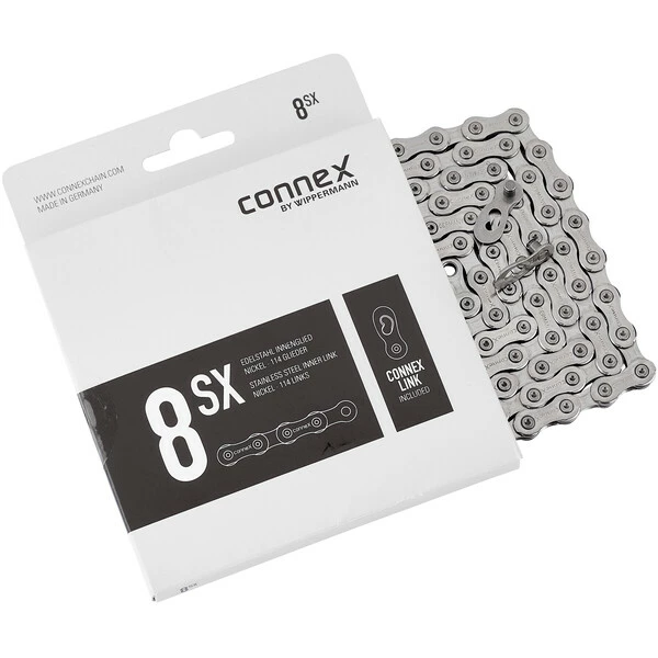 Conçue en acier, cette chaîne affiche une grande résistance et une excellente protection contre la corrosion grâce à un traitement de surface en nickel. Le transfert de puissance est parfait.