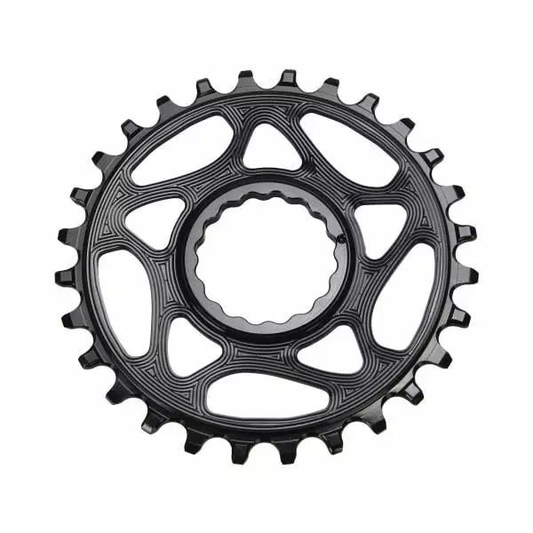 Le plateau est conçu en aluminium 7075, qui est un excellent compromis entre légèreté et robustesse. C’est un plateau Narrow-wide, c’est-à-dire qu’il fonctionne sans anti-dérailleur. De plus, sa denture particulière améliore le maintien de la chaine et réduit les frictions.
