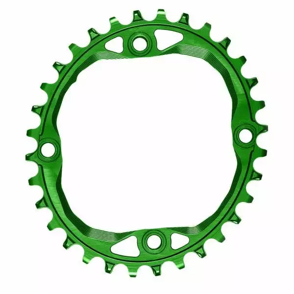 Le plateau est conçu en aluminium 7075, qui est un excellent compromis entre légèreté et robustesse. C’est un plateau Narrow-wide, c’est-à-dire qu’il fonctionne sans anti-dérailleur. De plus, sa denture particulière améliore le maintien de la chaine et réduit les frictions.