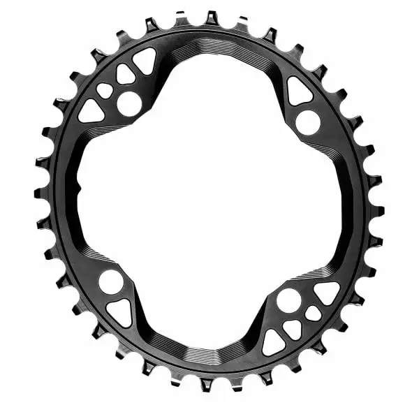 Le plateau est conçu en aluminium 7075, qui est un excellent compromis entre légèreté et robustesse. C’est un plateau Narrow-wide, c’est-à-dire qu’il fonctionne sans anti-dérailleur. De plus, sa denture particulière améliore le maintien de la chaine et réduit les frictions.