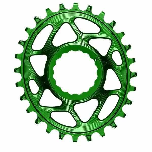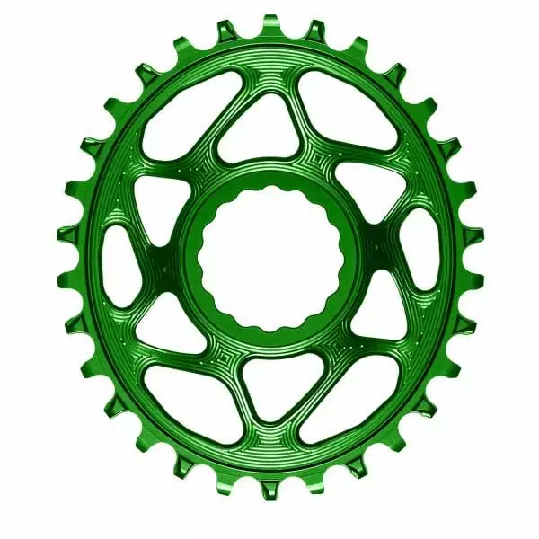 Le plateau est conçu en aluminium 7075, qui est un excellent compromis entre légèreté et robustesse. C’est un plateau Narrow-wide, c’est-à-dire qu’il fonctionne sans anti-dérailleur. De plus, sa denture particulière améliore le maintien de la chaine et réduit les frictions.