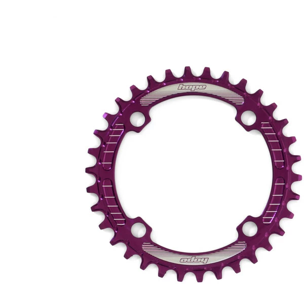 Le plateau HOPE Retainer Ring est conçu pour le VTT. Il possède une philosophie très simple : simple, léger et efficace. Grâce à des dents révolutionnaires usinées avec une extrême précision dans un bloc d’aluminium, ce plateau maintien parfaitement la chaîne, permettant ainsi de se passer de guide chaine. C’est également un plateau Narrowide, c’est-à-dire qu’il n’est pas obligatoire d’utiliser un système d’anti-déraillement pour rouler en VTT.