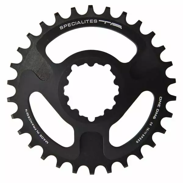 Destiné aux groupes 1×11 vitesses Sram, le plateau mono Specialites TA 11V Direct Mount 6 mm Offset présente l’avantage de s’affranchir du système de fixation à étoile. Il permet aussi le montage d’un plus large choix de denture, allant de 26 à 36 dents, moyennant le démontage de la manivelle droite.